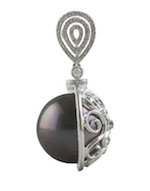 “Hidden Beauty” refers to this pendant’s unique turning mechanism which allows multiple ways to wear this exquisite pendant. This design is handcrafted in 18 karat white gold and accented with diamonds to elegantly showcase the Tahitian Pearl centerpiece