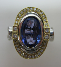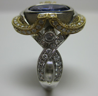 Diamond ring: white diamonds and black diamonds, black gold plated