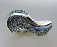"The Cliff": diamond ring, micropave setting, white diamonds and black diamonds, black gold plated